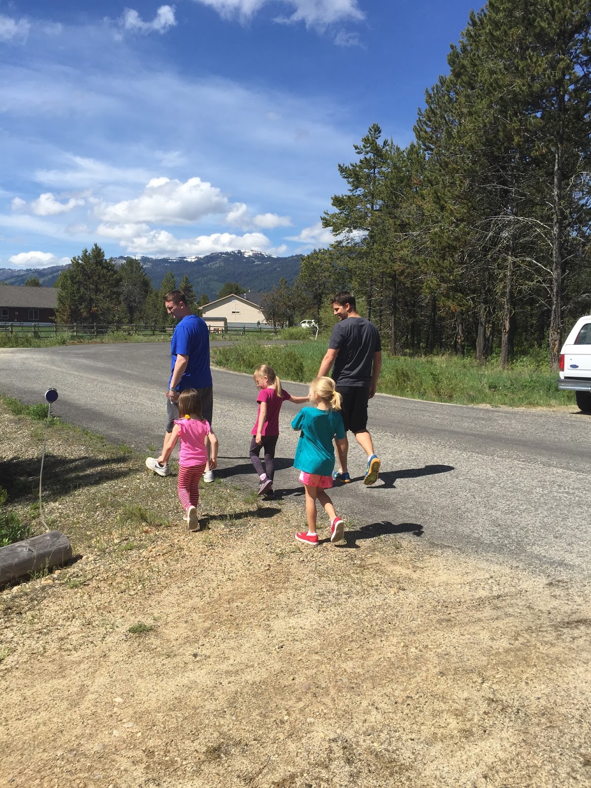 The first afternoon after we got there, Nick and Daniel took the big girls on a walk to the lake.